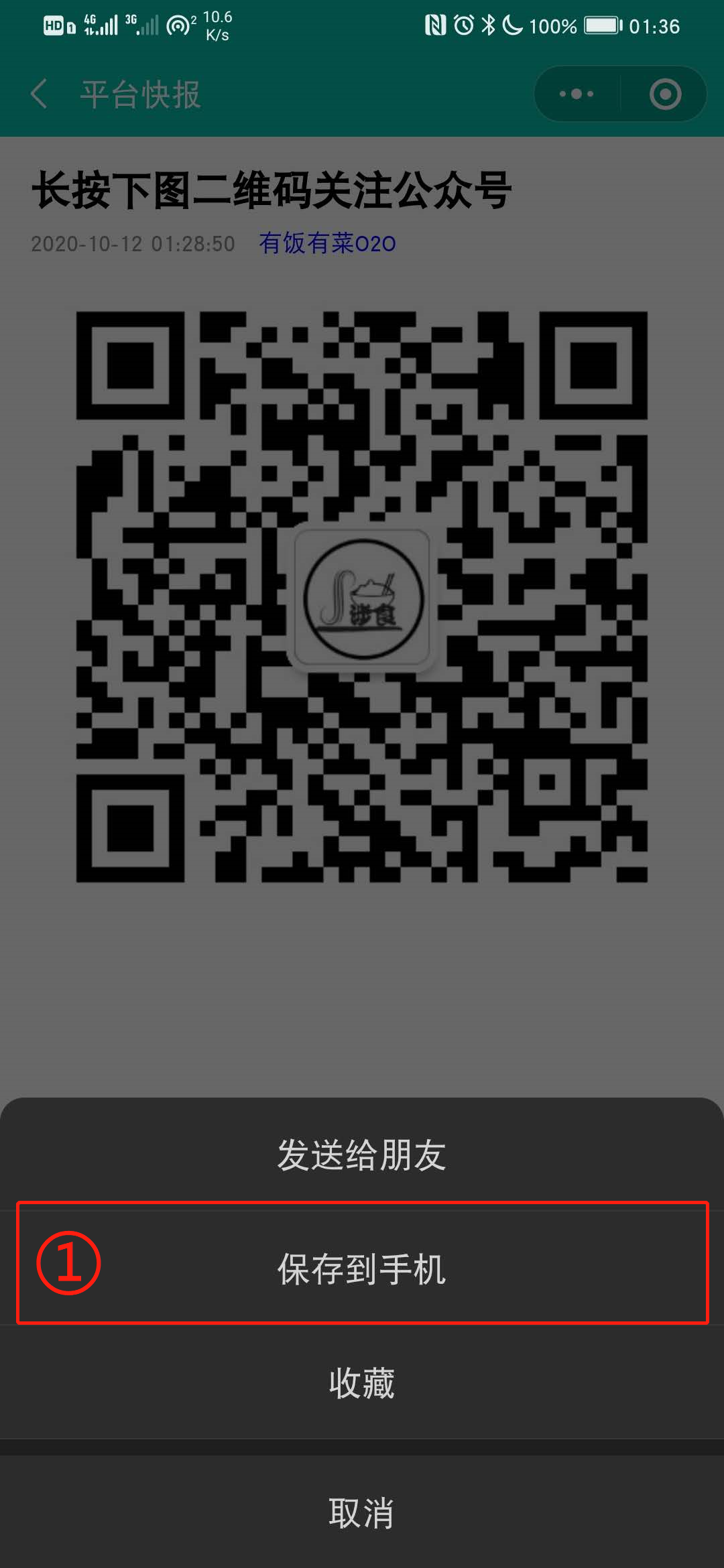 ① 长按图片 ~ “点击保存”